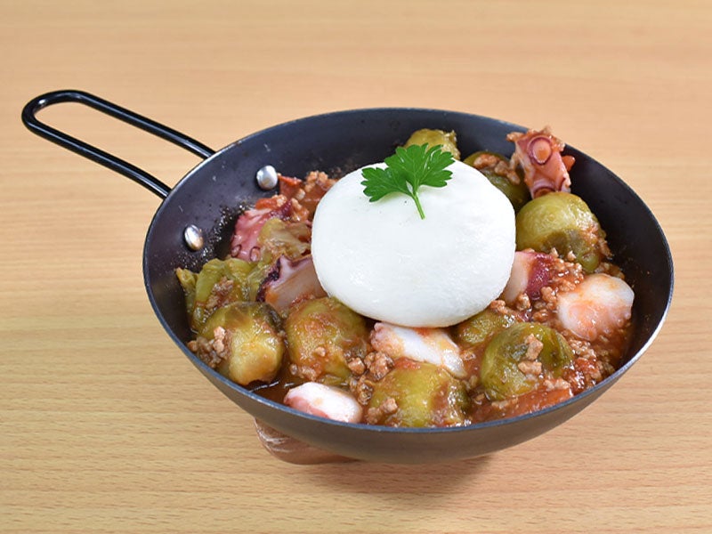 タコと芽キャベツのトマトソース ブラータ乗せ