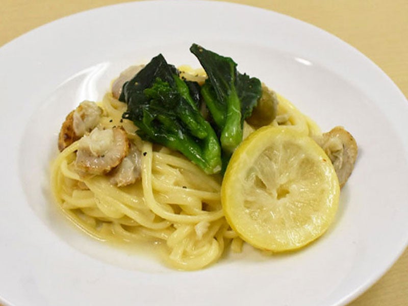 ベビーホタテと菜の花レモンクリームパスタ(リングイネ)