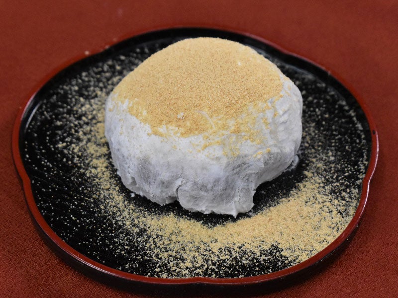 - ひっくり返して皿に盛り付け、「大豆きな粉」を振りかけ提供。