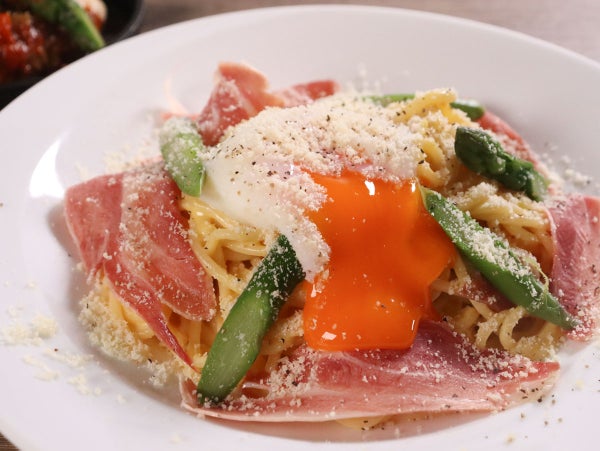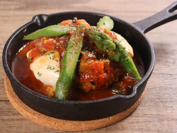 - 「サルサポモドーロ」に1/4にカットした「プチトマト」を入れて温め、ソースを作る。