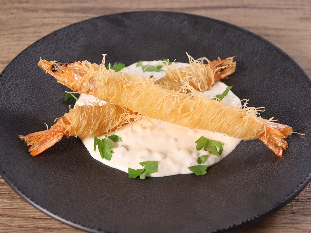 たっぷりタルタルで!カダイフ衣の海老フライ