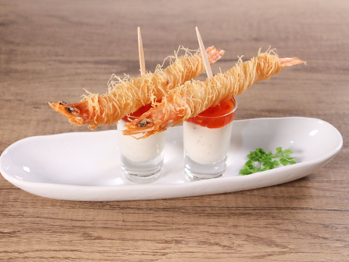 - 「有頭えびカダイフ揚げ」を揚げる。