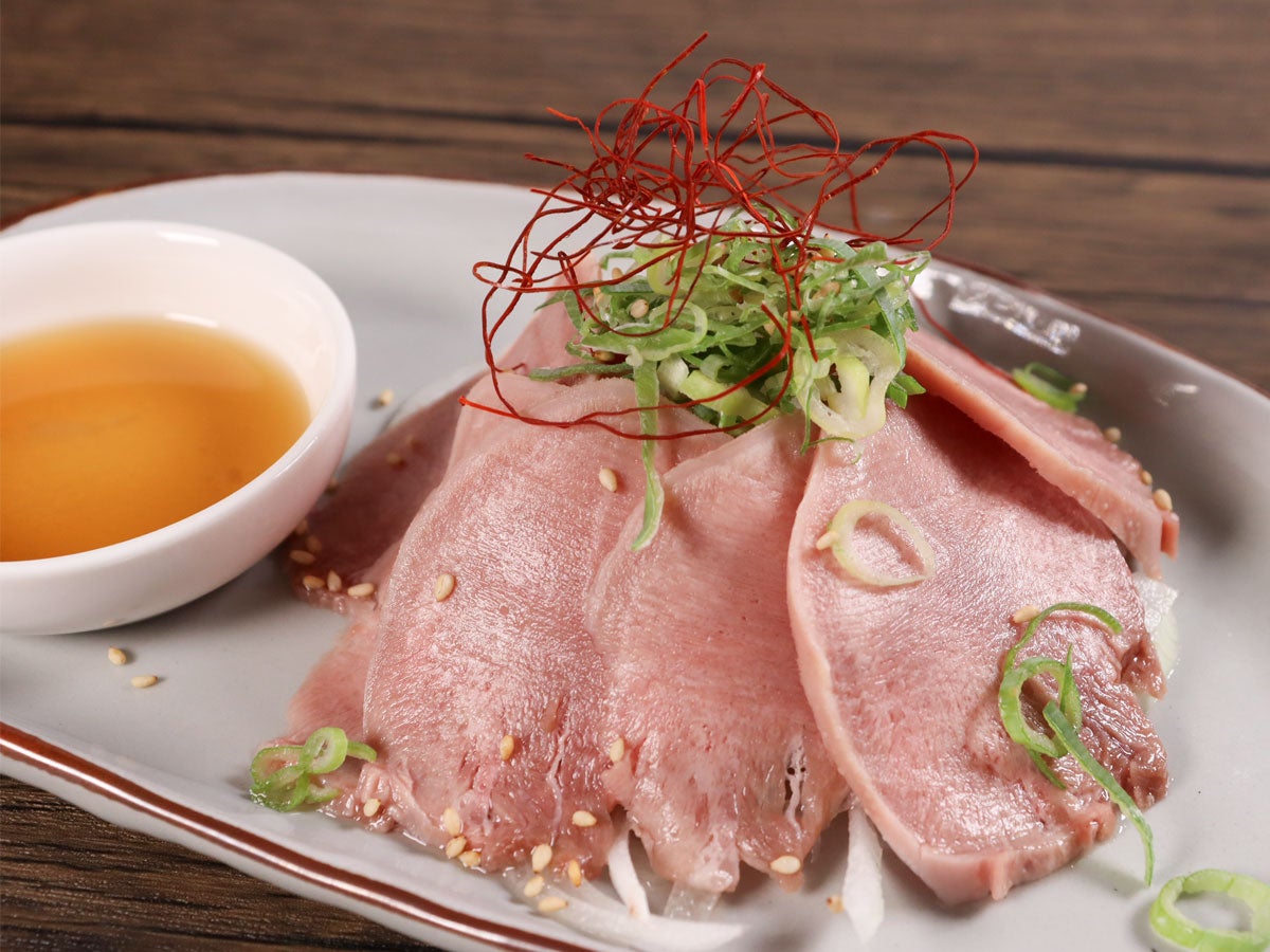 低温調理済みの豚タンなので、スライスするだけでタン刺しを提供できます。 ごま油、ねぎ、塩で提供がおススメです。