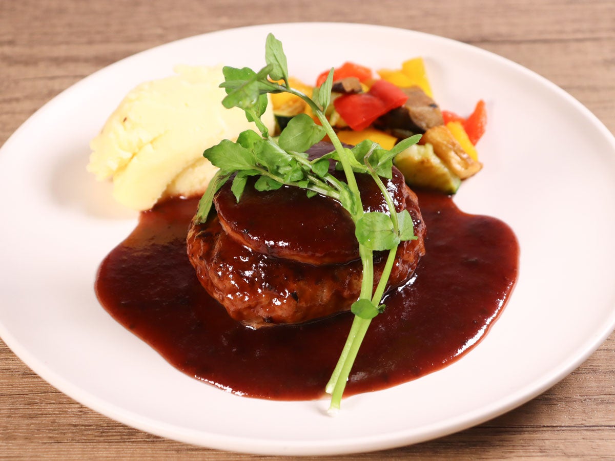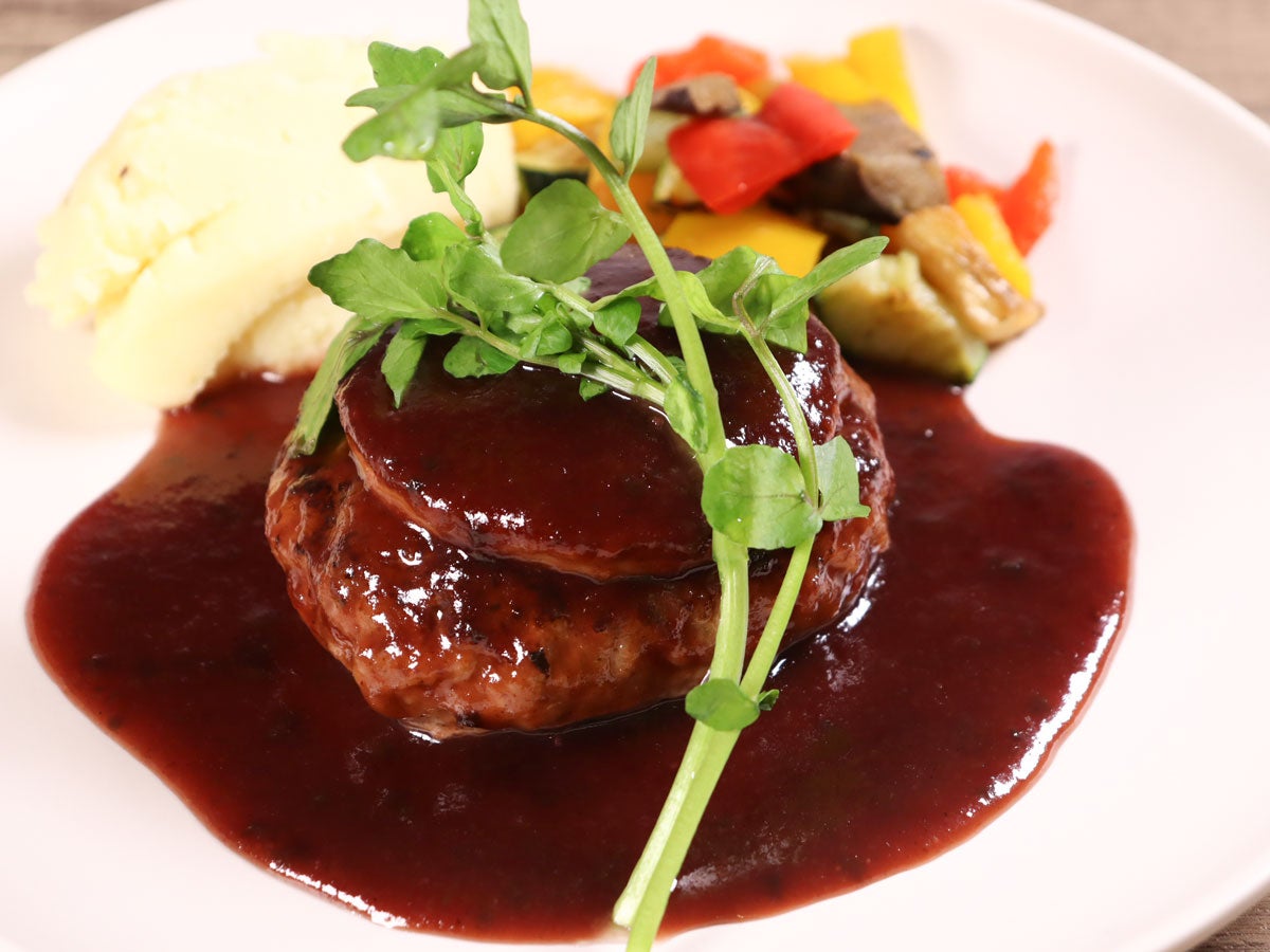 - ハンバーグの上にソテーした「グラフォアスライス」を乗せる。