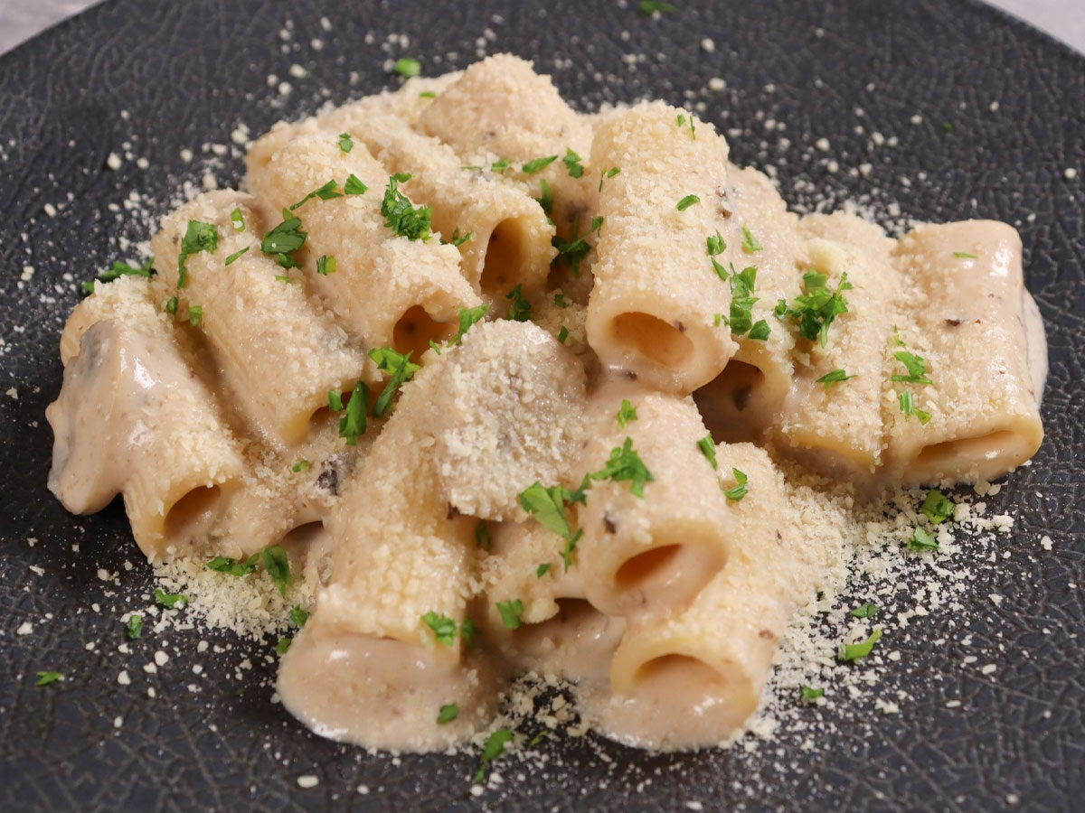 クリームソースベースときのこペーストを使用して簡単にクリームソースが作れます。 もちもちのリガトーニは、茹で時間たったの30秒♪ 冬にピッタリなメニューです。