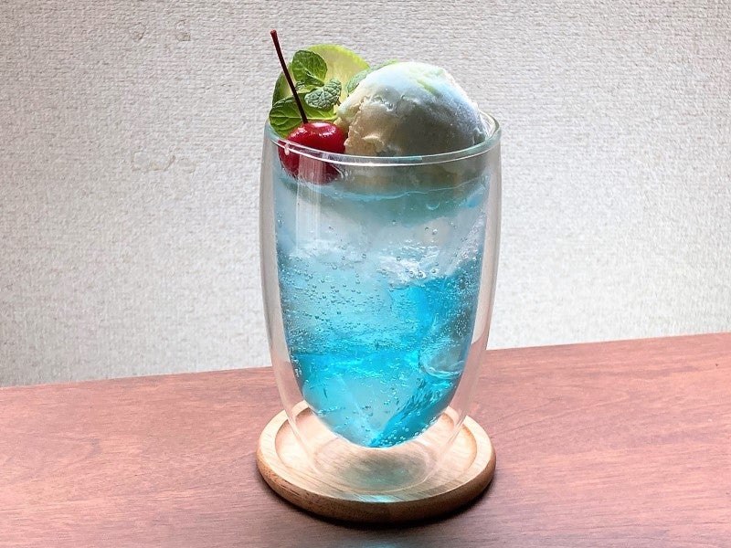 思わず写真が撮りたくなるかわいらしいクリームソーダです。 ポイント:アイスは沈んでしまうので氷を多めに入れる。