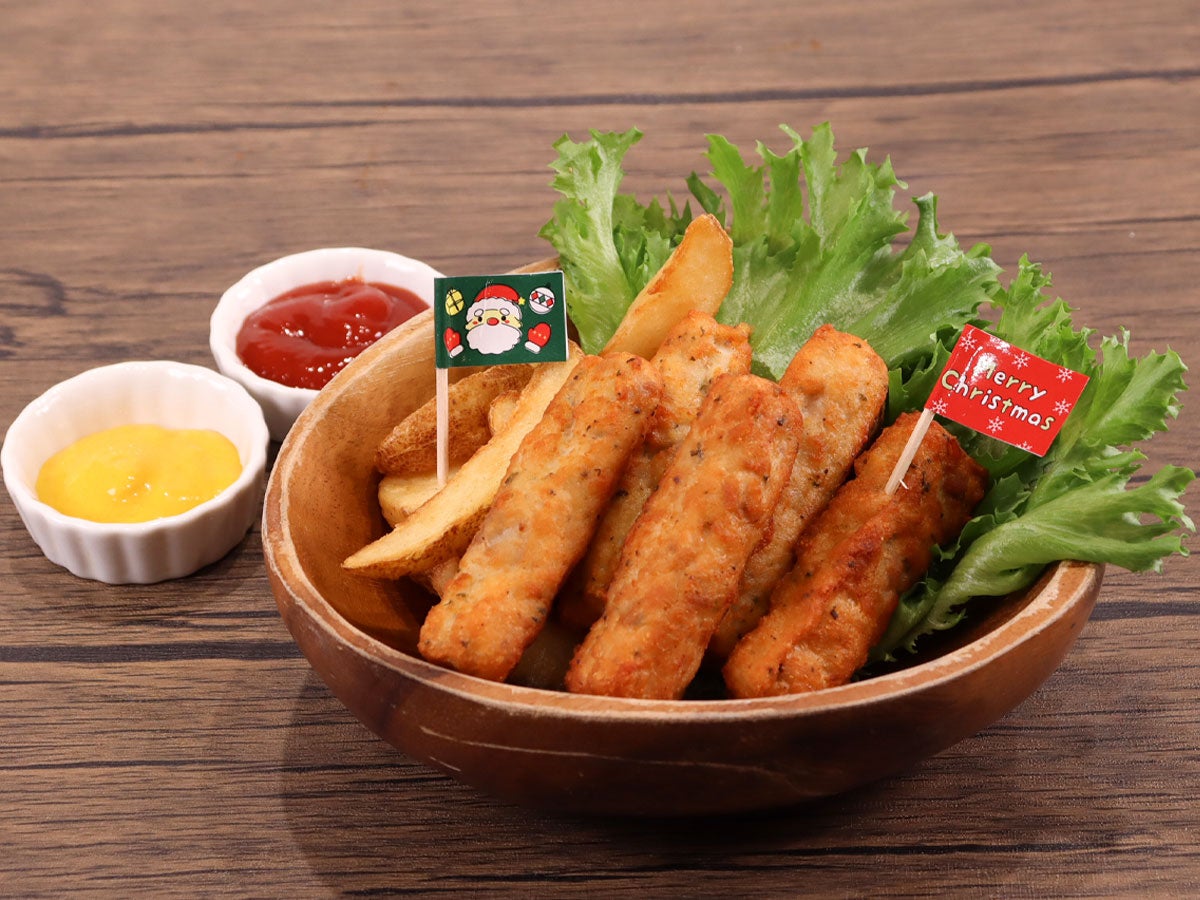 チキンスティック、ポテト共にしっかりと味が付いているので何もつけなくてもおいしく提供できます。 もちろん皿に盛り付けてパーティーシーンにもピッタリです。