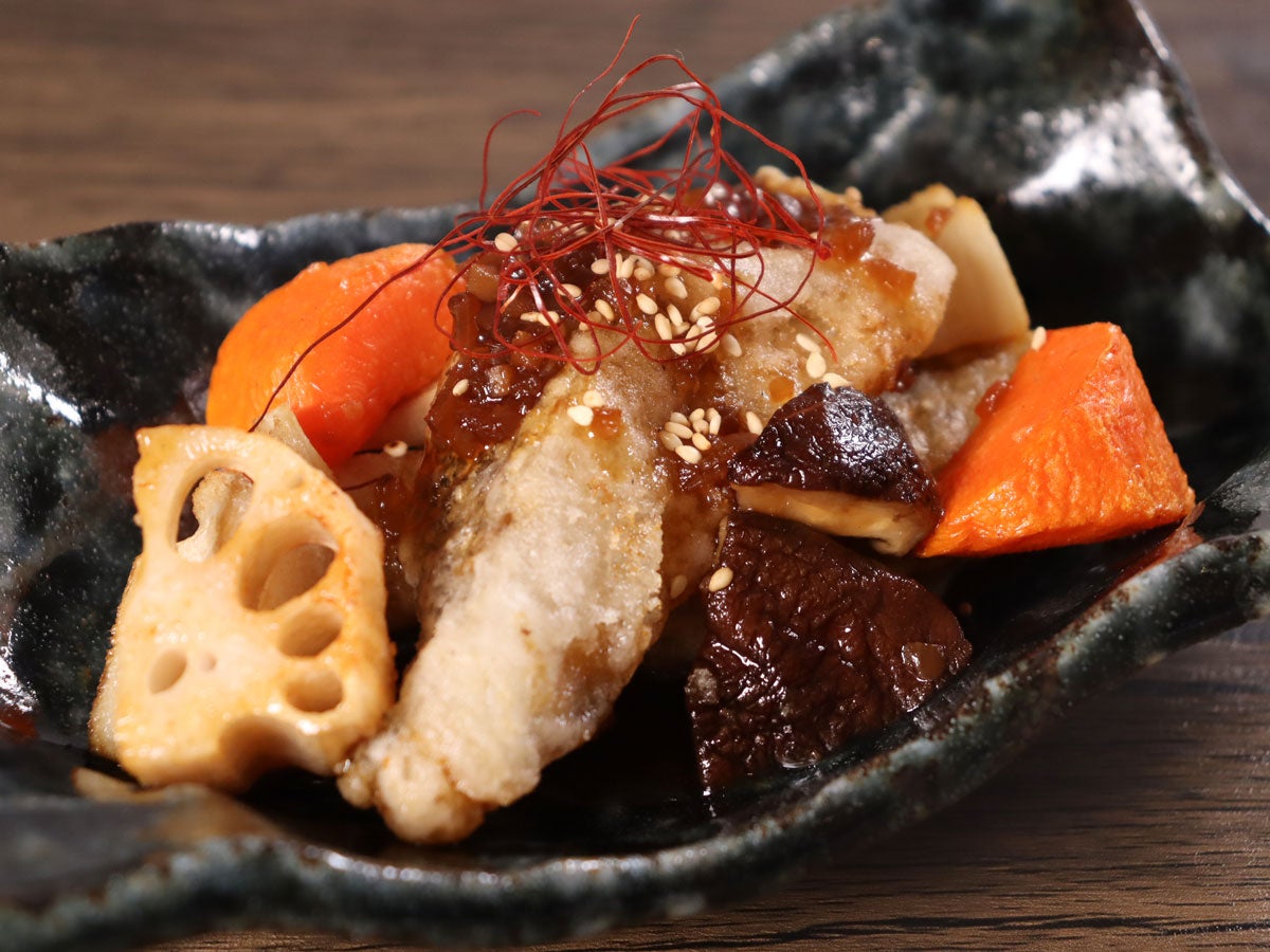 鱈を揚げて、油淋ソースで和えました。 30gサイズなので使い勝手が良く、様々な料理に活用できます。 また、煮物野菜ミックスを使えば具材を揃えることが出来ます。