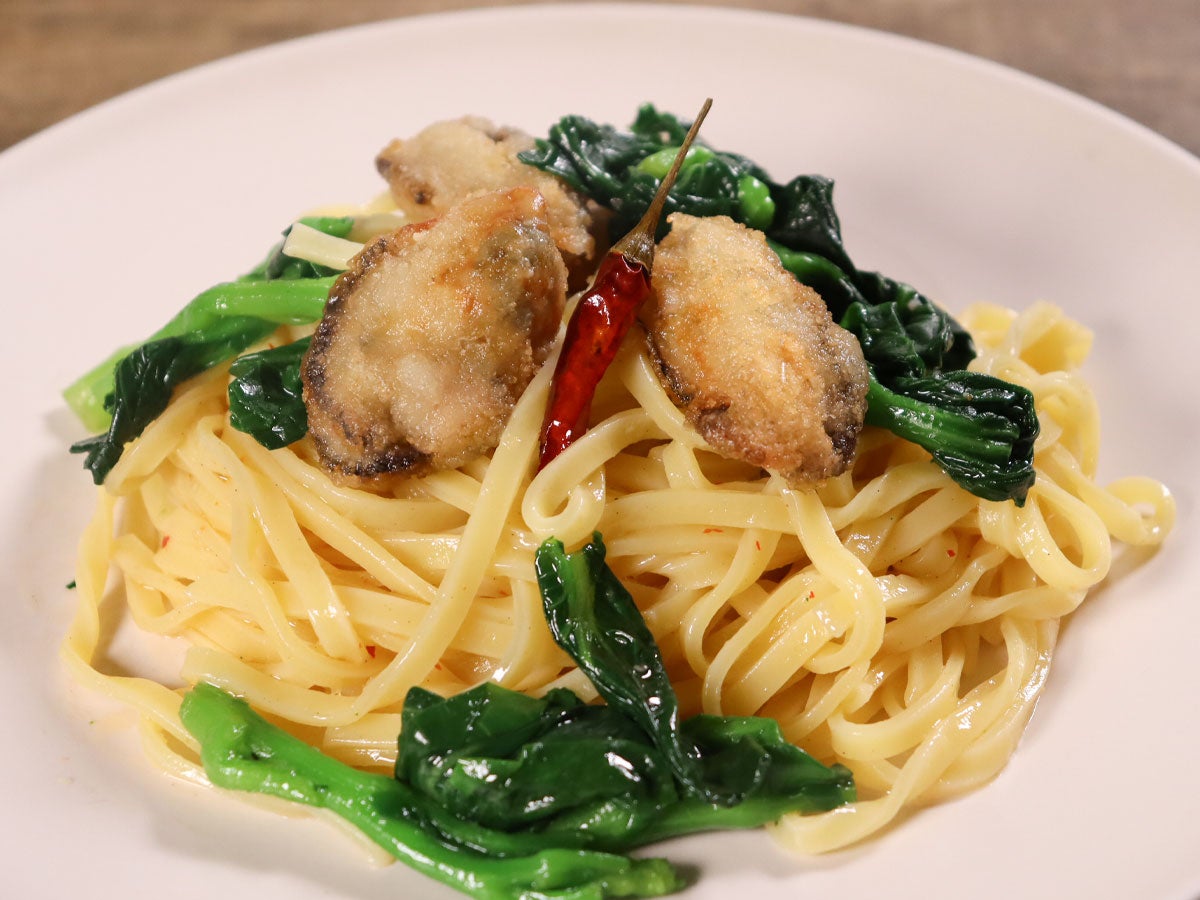 牡蠣と菜の花のペペロンチーノ