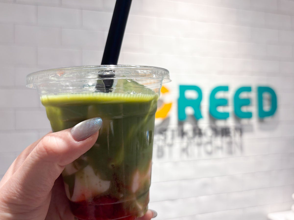 ごろっと果実の「いちご抹茶杏仁ラテ」