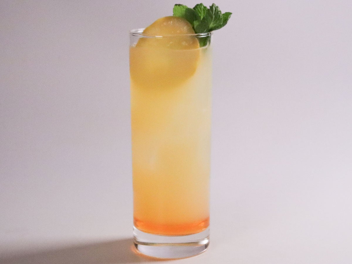 - ①に「ホワイトグレープフルーツジュース」を優しく注ぎ、「スライスレモン」を入れる。