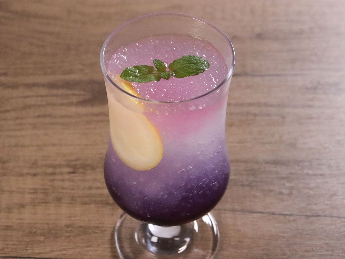 「飲むかき氷」と「ソーダ」がドッキング! 最初はシャリシャリの冷たいかき氷、混ぜるとシュワっと爽快なソーダに。 バタフライピーの神秘的なパープルが、ひんやり涼しい時間を演出してくれます。 デザートみたいな満足感のある新感覚ドリンク、ぜひ体験してください!