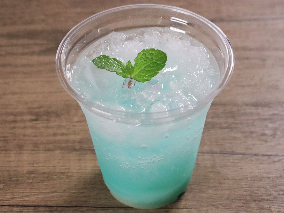 みんな大好きカルピスソーダを、夏全開のブルーで爽やかにアレンジしました。 シュワシュワの炭酸と、この淡い水色が相まって、喉ごしの爽快感はハンパないです。
