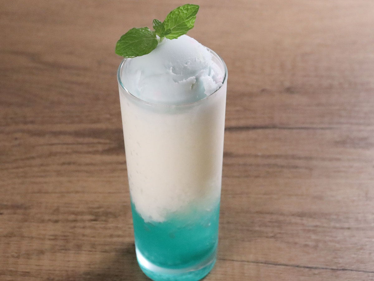 シャリシャリ!ラムネ杏仁ミルクフロート