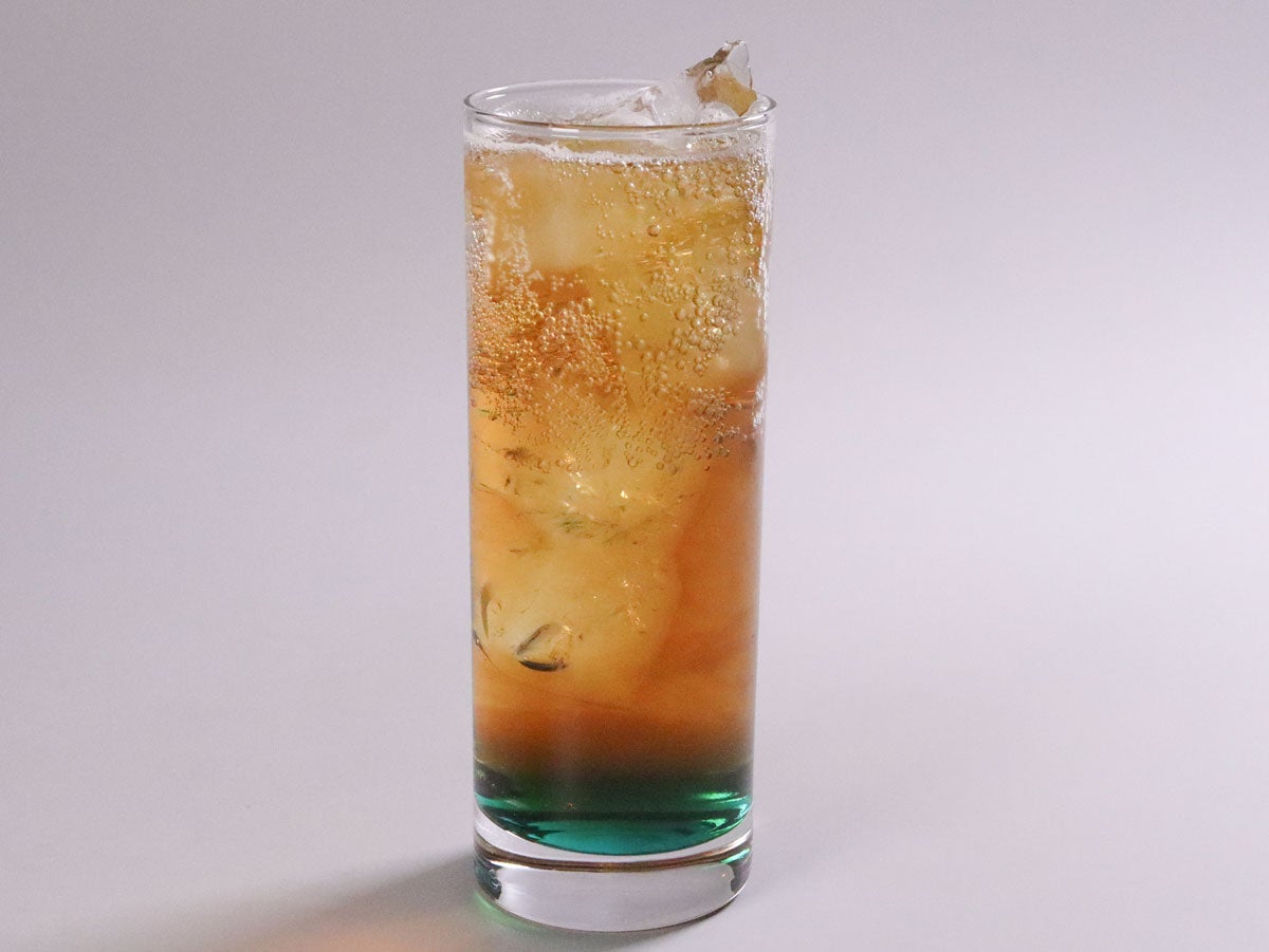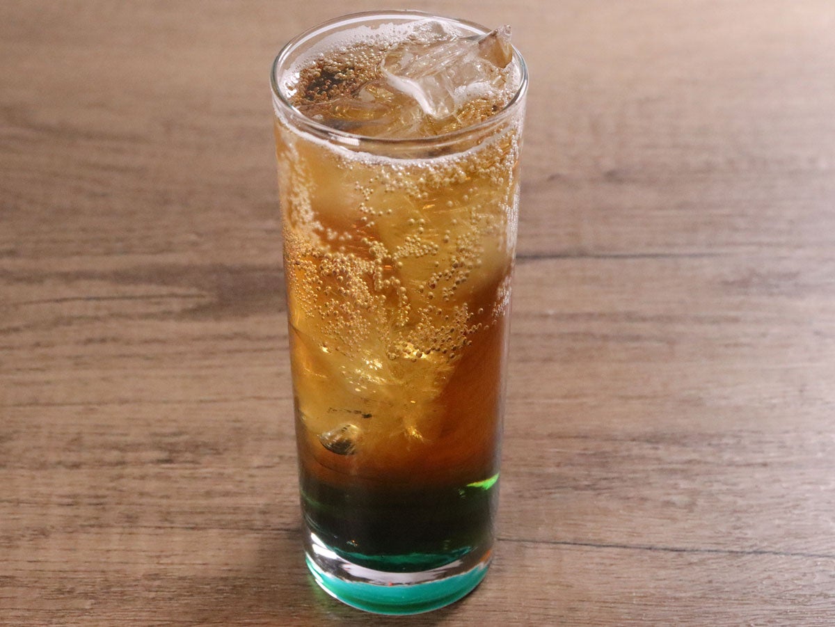 アールグレイの琥珀色から、ラムネの深い青へのグラデーション。 混ぜるたびに色が深まっていく様子は、まるで日が沈む空のようですわ。 スッキリ爽快なラムネ風味のあとに、ベルガモットの香りがふわっと広がる、大人な仕上がりのソーダです。