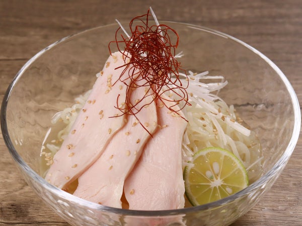 - 「水」で希釈した「冷麺スープ」をかけて提供。