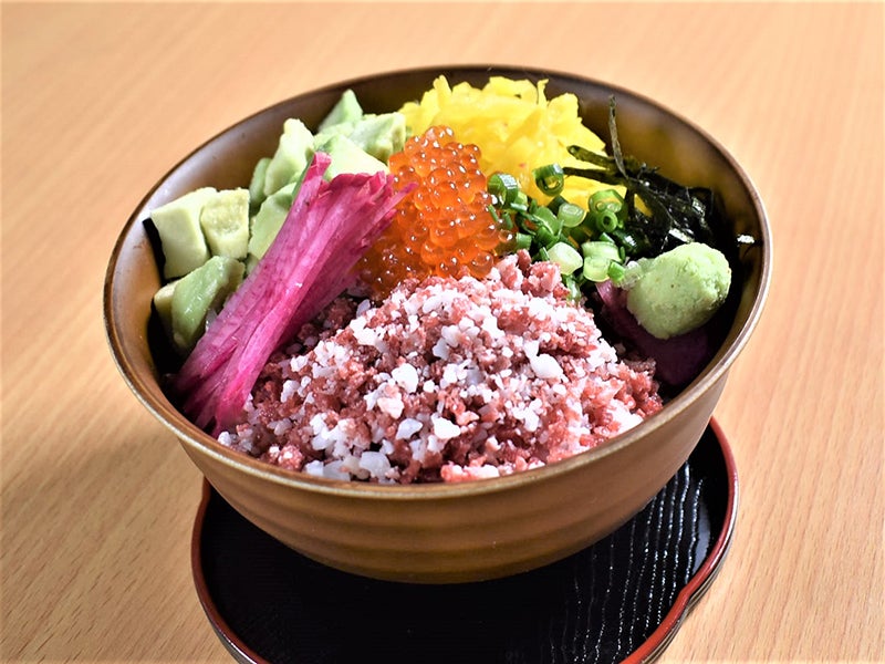 - 冷凍のふっくらごはんをレンジで250gあたり約5分温め、どんぶりに移し、「刻みたくあん」「和とろフレーク」、半解凍した「アボカドダイス」を盛る。