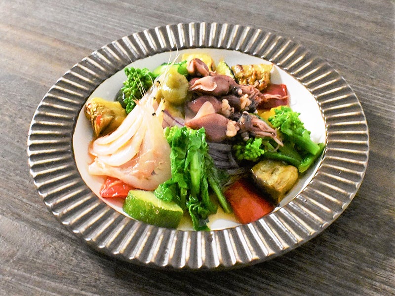 白海老とホタルイカのグリル野菜のさっぱり冷菜