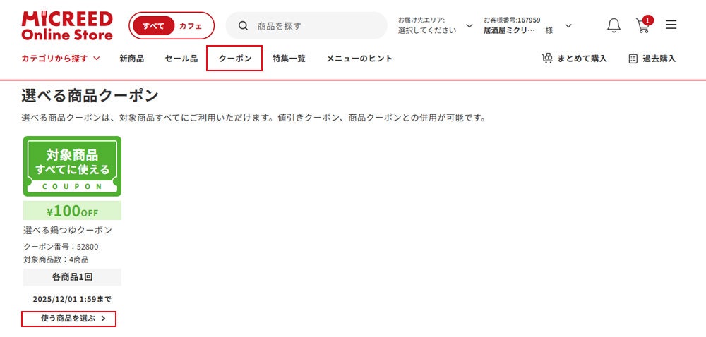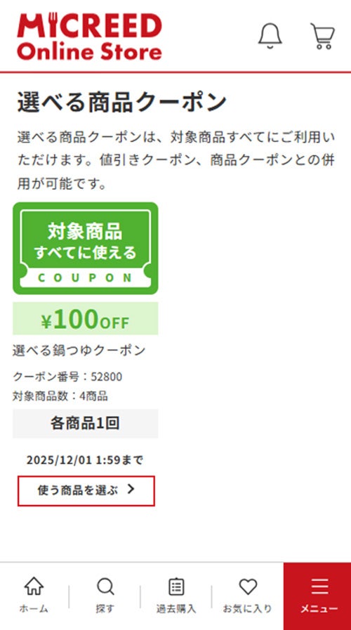 クーポン対象商品すべてに使える「選べる商品クーポン」ができました