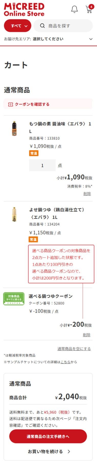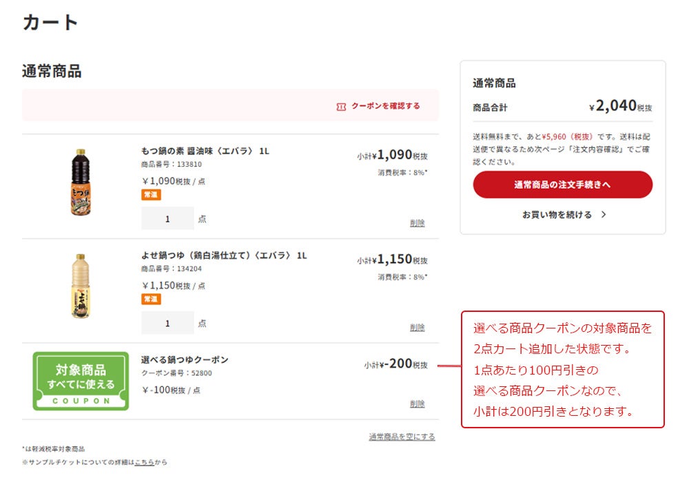商品とクーポンが同時にカートに入りますので、購入手続きをしてください。